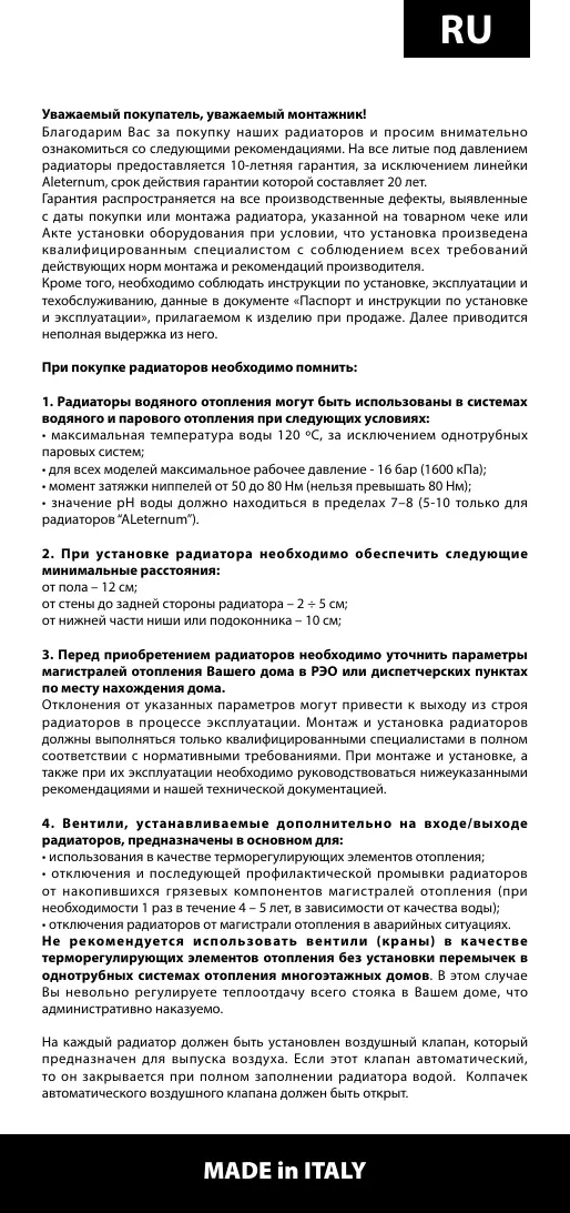 2 les radiateurs peuvent être utilisés sur une installation en eau chaude ou à vapeur (température maximum 120 °C) à l'exclusion des systèmes à vapeur monotube;