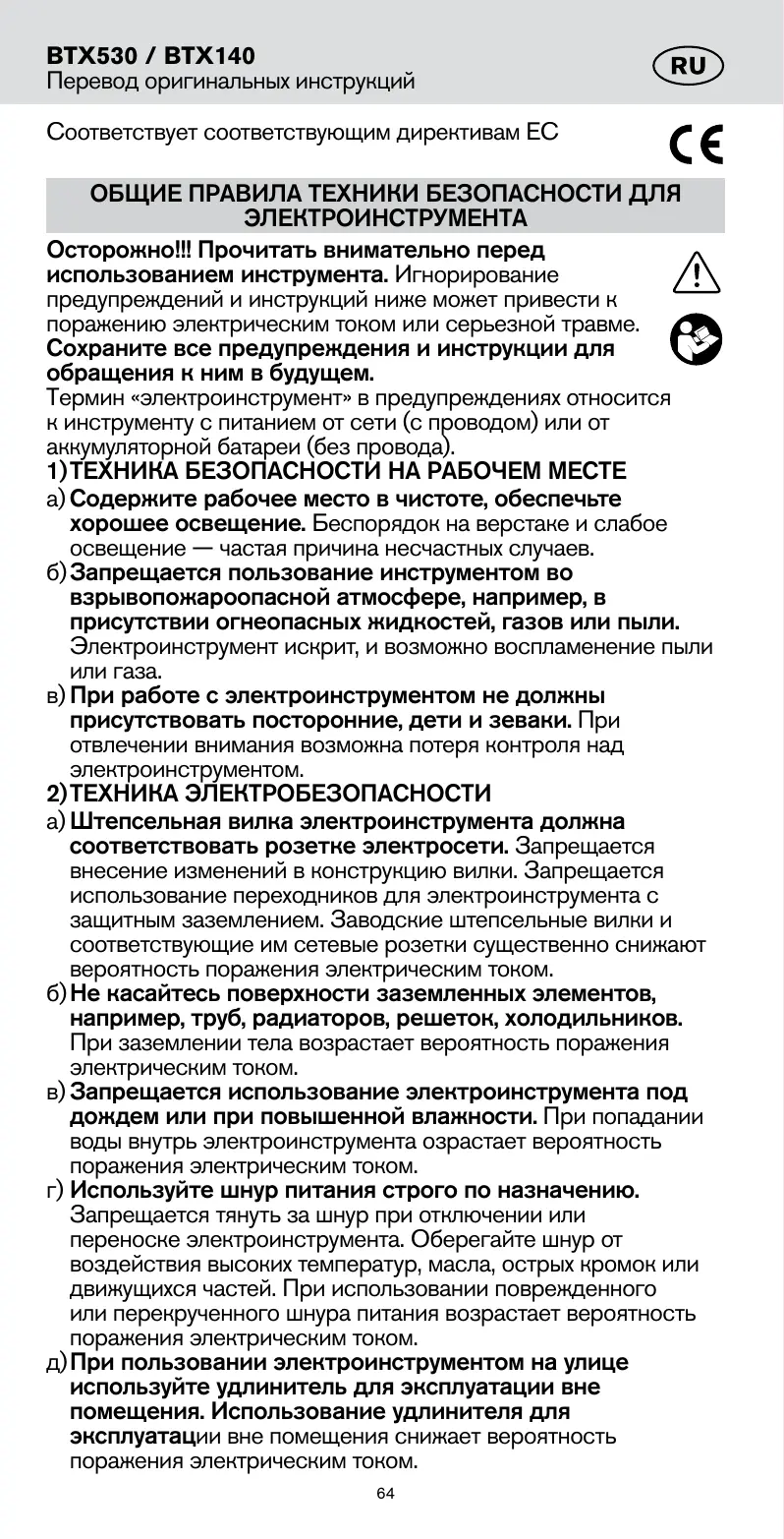 Найдите руководство к устройству бесплатно BTX530 / BTX140 RAPID в формате PDF.