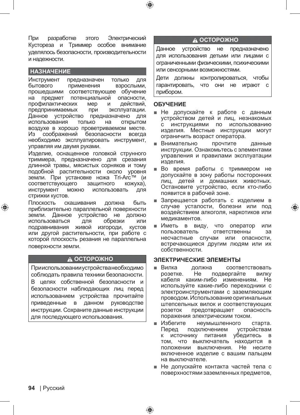 UTILISATION PRÉVUE La coupe-bordures et débrousailleuse électrique doit être utilisée seulement par des adultes ayant lu et compris les instructions et les avertissements inclus dans le présent manuel et pouvant être considérés comme responsables de leurs actes. Ce produit ne doit être utilisé qu'à l'extérieur dans une zone bien ventilée. Pour des raisons de sécurité, l'appareil doit être manipulé de manière appropriée, en utilisant les deux mains.