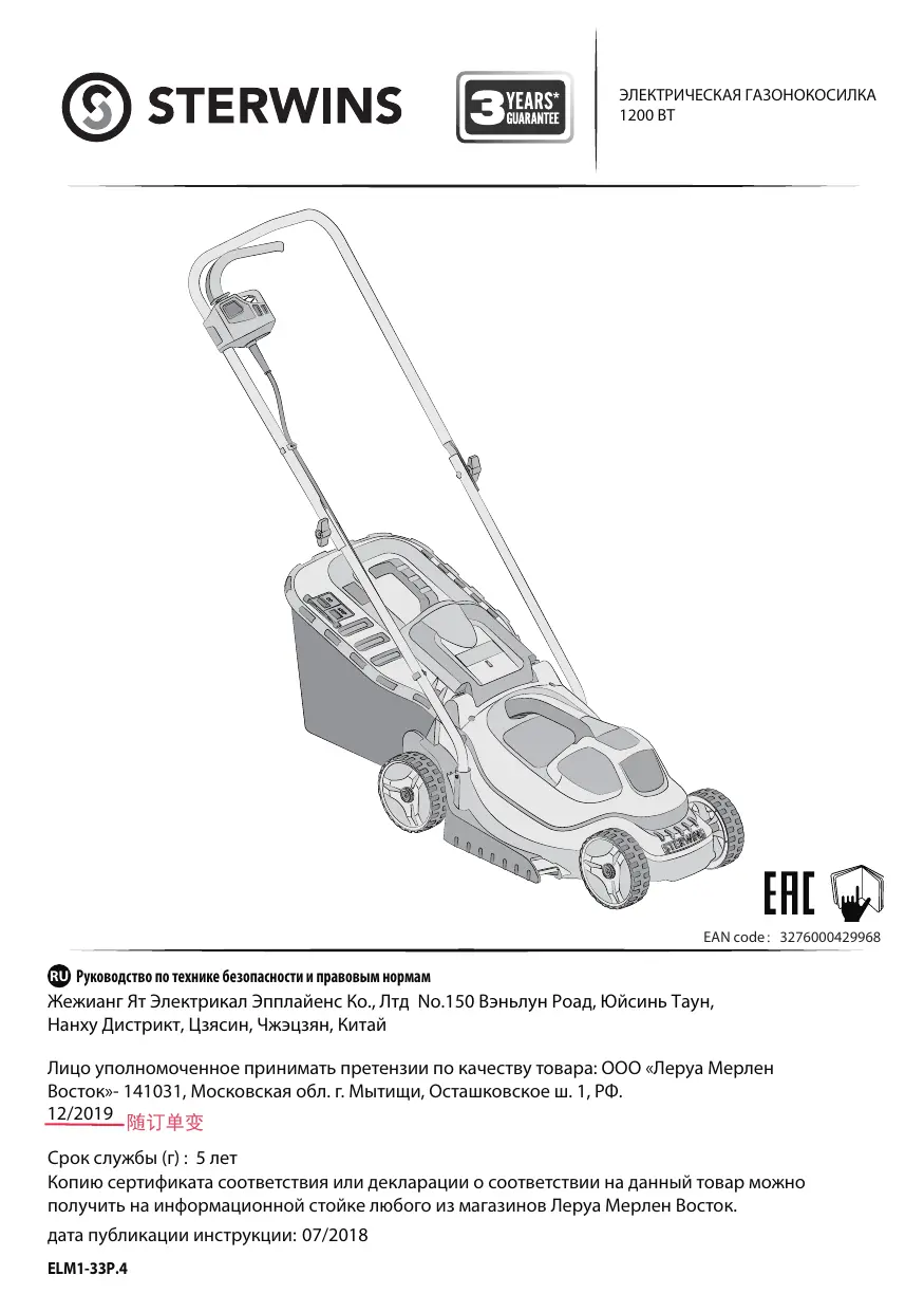 ELM1-33P.4 - электрическая газонокосилка STERWINS - Бесплатное руководство пользователя