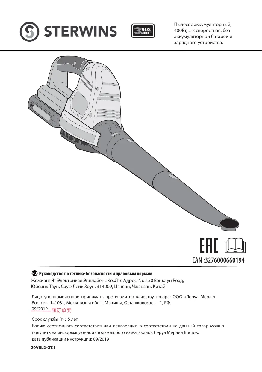 Скачайте инструкцию для вашего воздуходувка для листьев в формате PDF бесплатно! Найдите своё руководство UP20 - 20VBL2-GT.1 - STERWINS и возьмите своё электронное устройство обратно в руки. На этой странице опубликованы все документы, необходимые для использования вашего устройства. UP20 - 20VBL2-GT.1 бренда STERWINS.