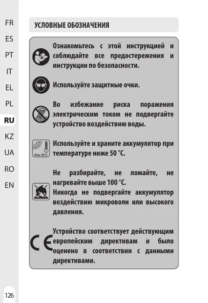 Ne démontez pas la batterie, ne l'écrasez pas etnelafaites pas chauffer à plus de 100 °C.