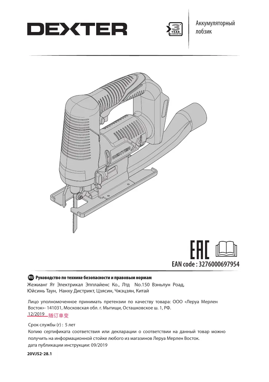 UP20 20 V - 20VJS2-28.1 - Беспроводной лобзик DEXTER - Бесплатное руководство пользователя