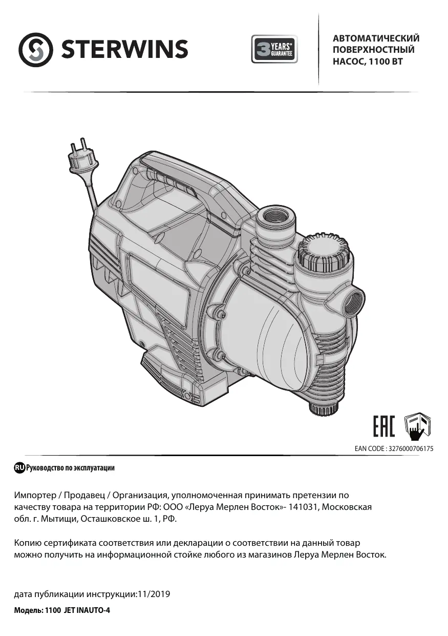 1100 JET INAUTO-4 - Pompe automatique STERWINS - Бесплатное руководство пользователя