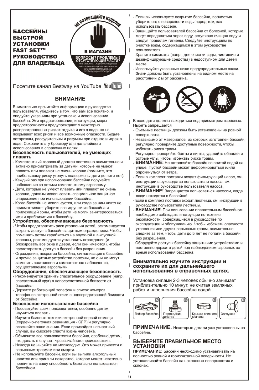 РУКОВОДСТВО ПОЛЬЗОВАТЕЛЯ FAST SET BESTWAY