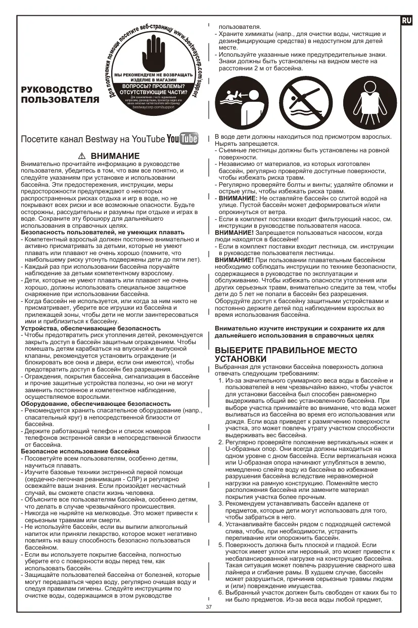 Найдите руководство к устройству бесплатно SWIMVISTA BESTWAY в формате PDF.