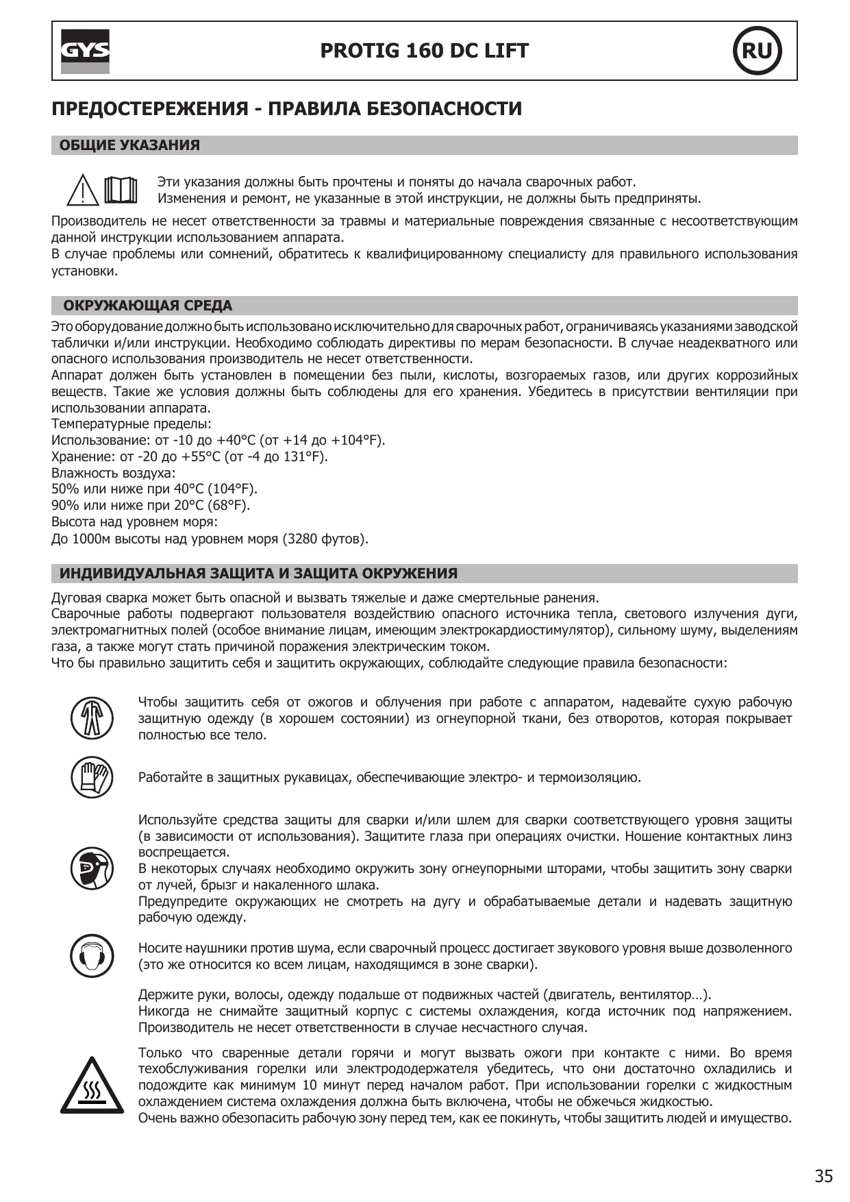 РУКОВОДСТВО ПОЛЬЗОВАТЕЛЯ TIG 160 DC LIFT GYS