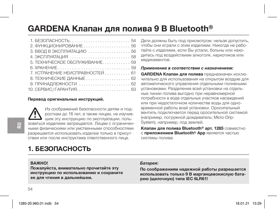 РУКОВОДСТВО ПОЛЬЗОВАТЕЛЯ 1285 GARDENA