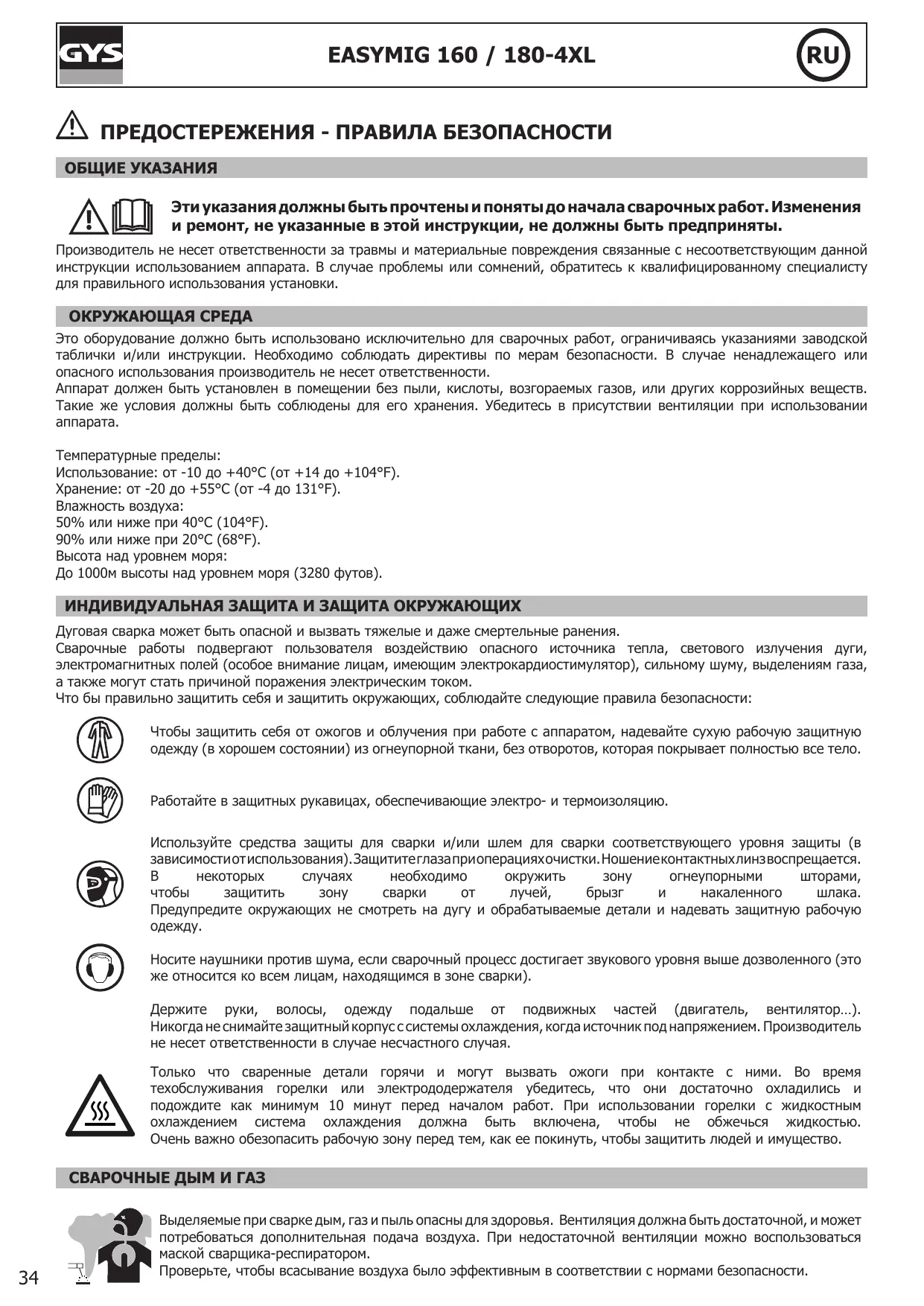 РУКОВОДСТВО ПОЛЬЗОВАТЕЛЯ EASYMIG 160 GYS