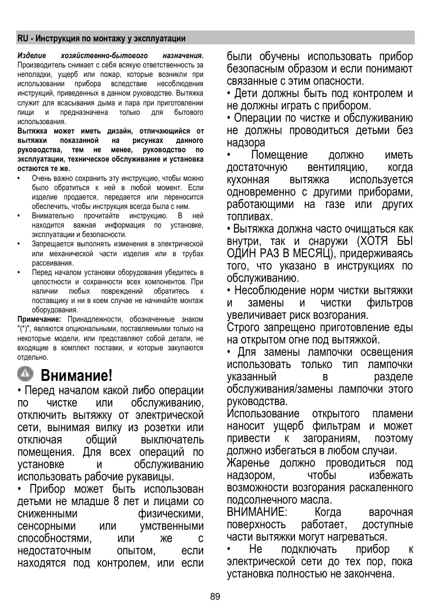 + La hotte ne doit JAMAIS être utilisée comme une surface d'appui, sauf indication expresse.