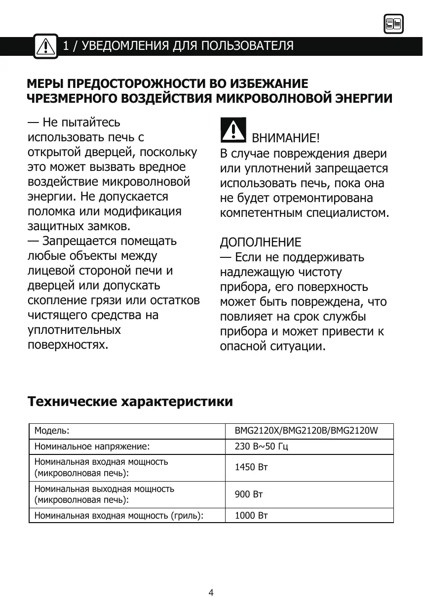 РУКОВОДСТВО ПОЛЬЗОВАТЕЛЯ BMG2120B BRANDT