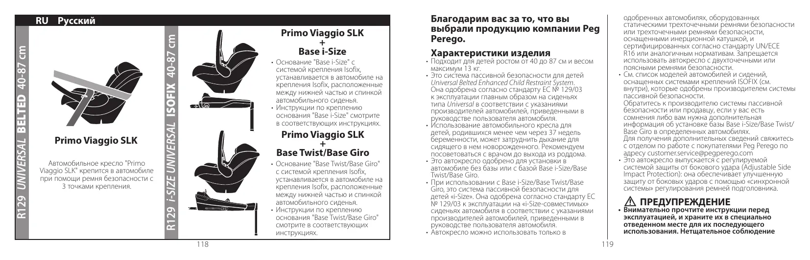 Primo Viaggio SLK - автокресло PEG PEREGO - Бесплатное руководство пользователя