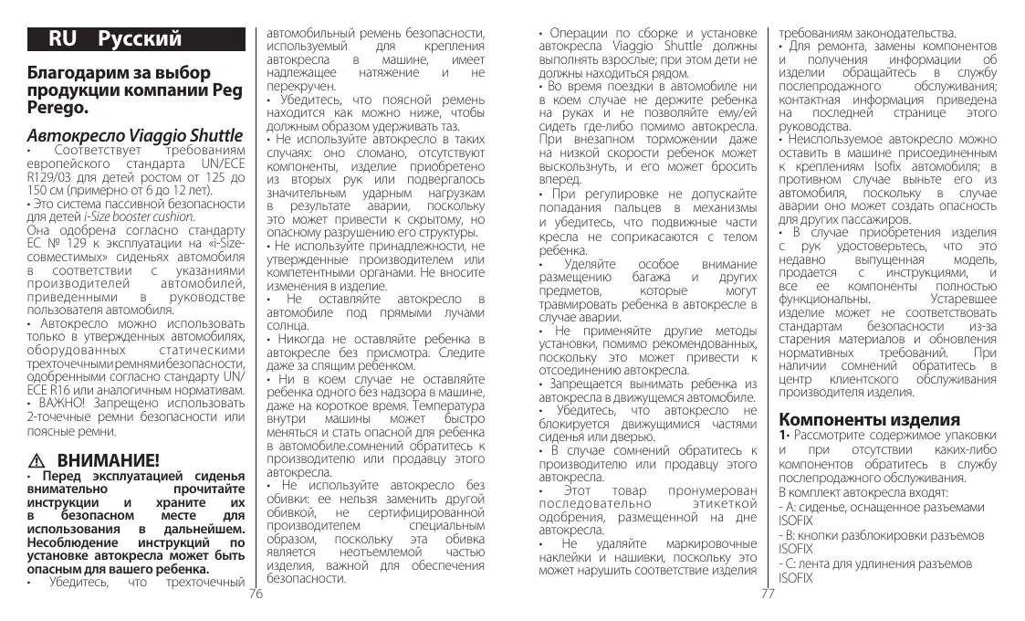 Viaggio Shuttle - автокресло PEG PEREGO - Бесплатное руководство пользователя