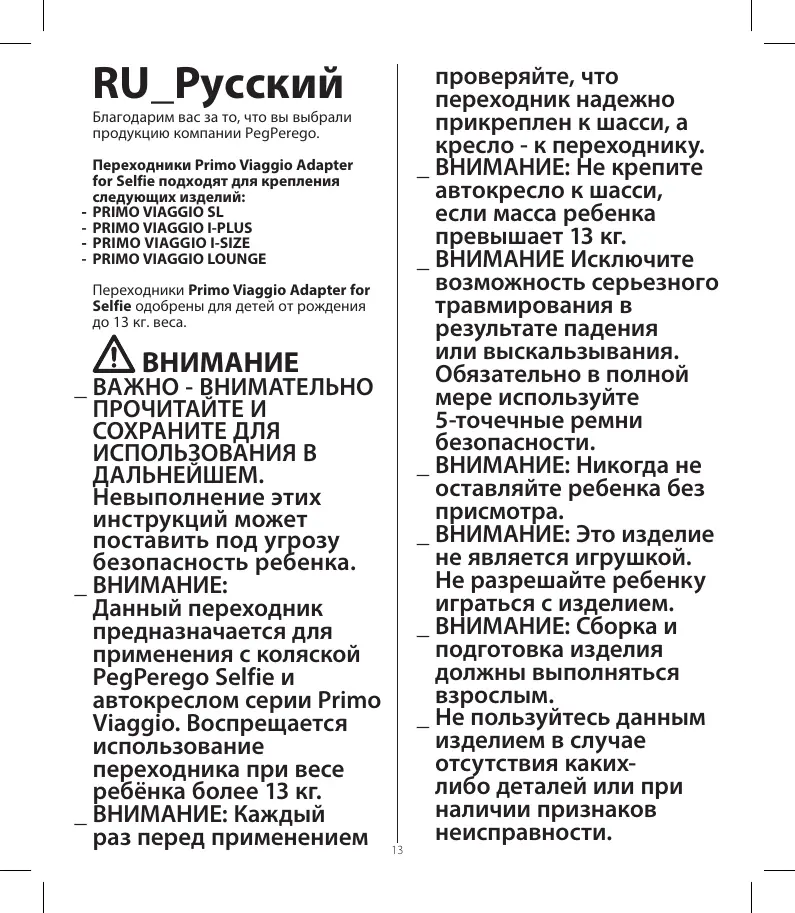 Найдите руководство к устройству бесплатно Primo Viaggio Adapter Selfie PEG PEREGO в формате PDF.