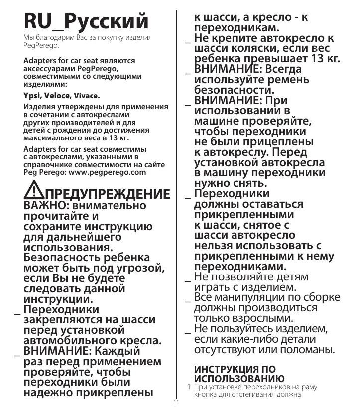 Adapters for Car Seat - автокресло PEG PEREGO - Бесплатное руководство пользователя