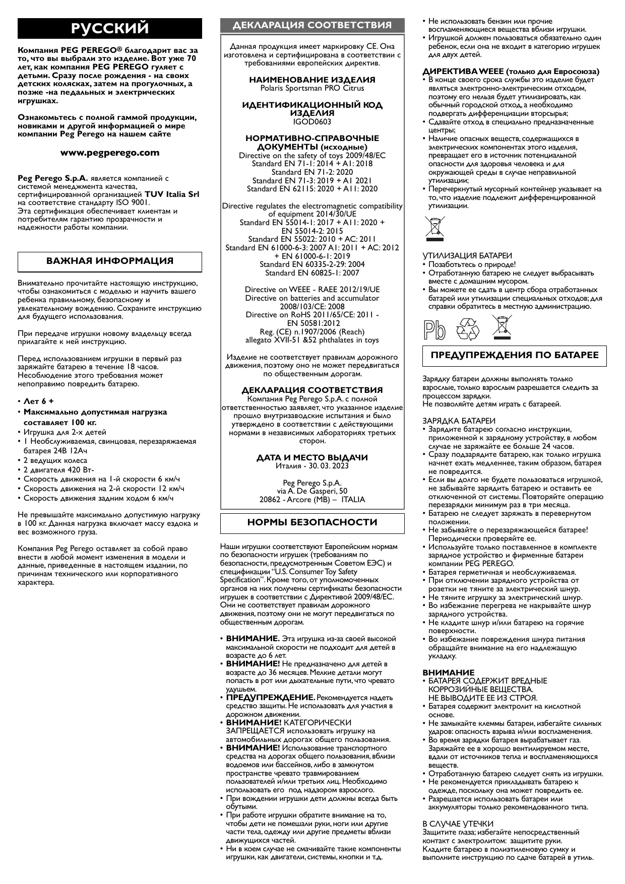 Найдите руководство к устройству бесплатно Polaris SPORTSMAN PRO Citrus PEG PEREGO в формате PDF.