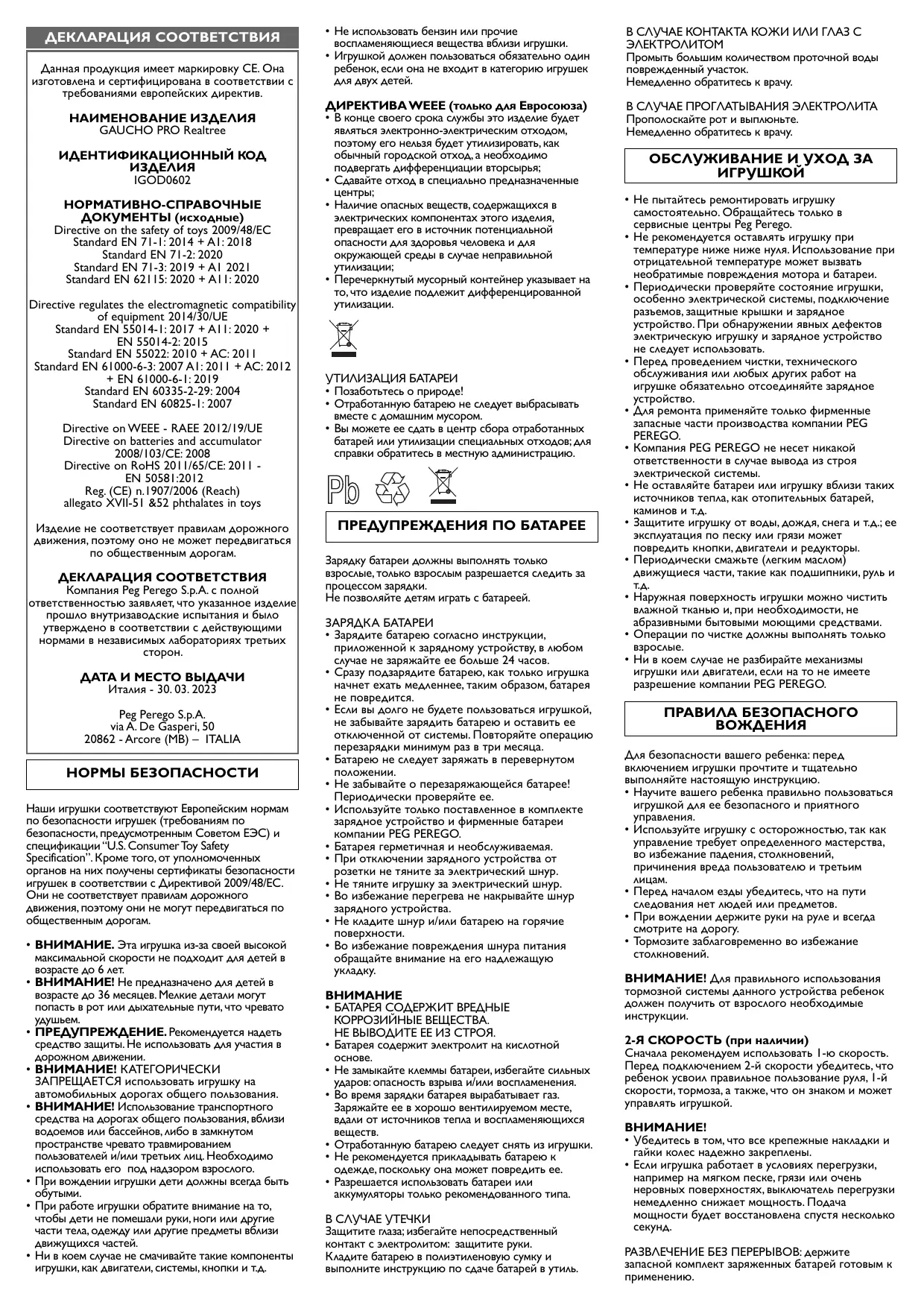 Найдите руководство к устройству бесплатно GAUCHO PRO Realtree PEG PEREGO в формате PDF.