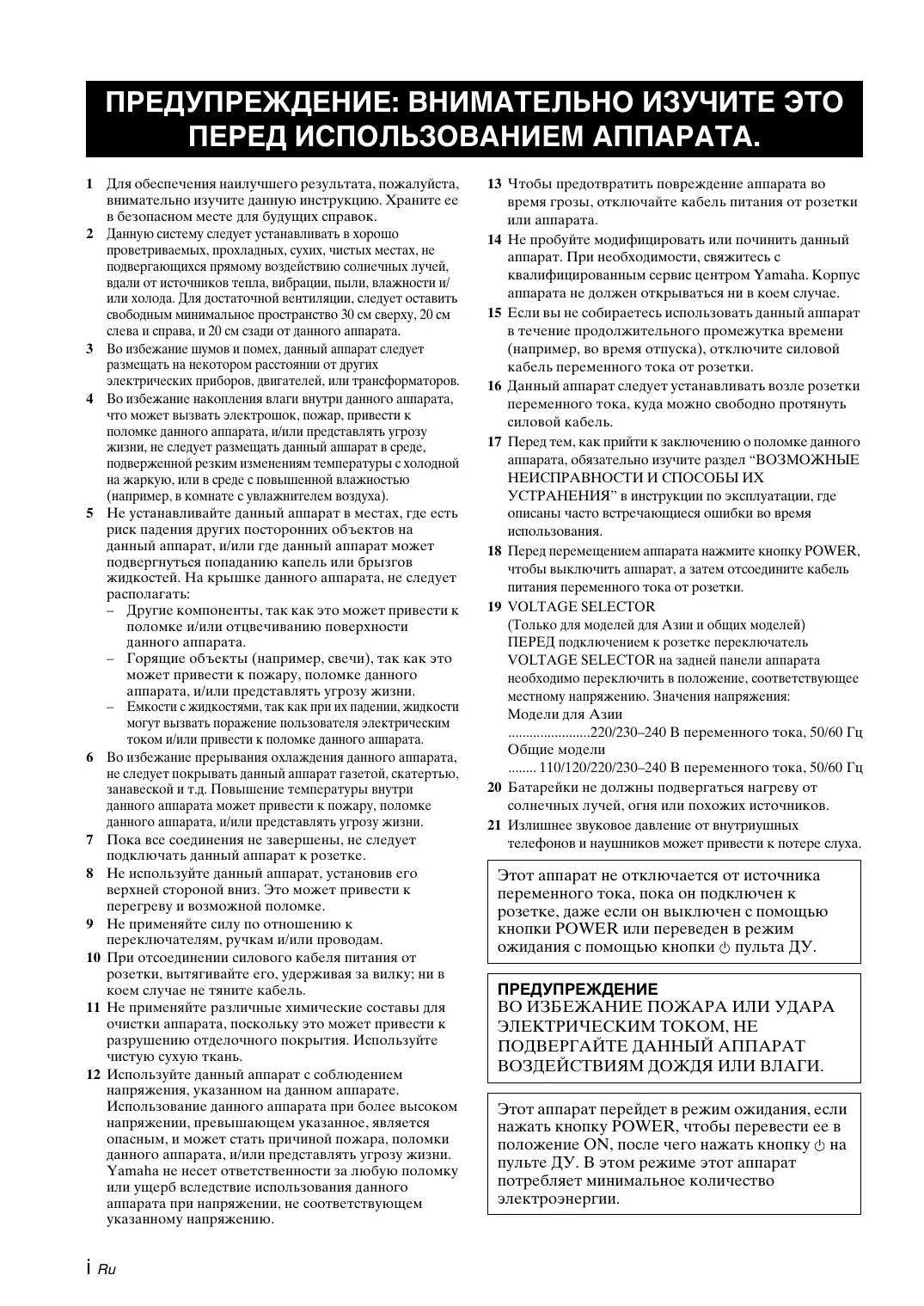 1 Um optimales Leistungsvermögen sicherzustellen, lesen Sie bitte die Anleitung aufmerksam durch. Bewahren Sie die Para evitar daños provocados por relámpagos, desenchufe el cable de alimentación de la toma de la pared o de la unidad durante tormentas eléctricas. No intente modificar ni arreglar este aparato. Póngase en contacto con el personal de servicio Yamaha cualificado cuando necesite realizar alguna reparación. La caja no deberá abrirse nunca por ninguna razón.