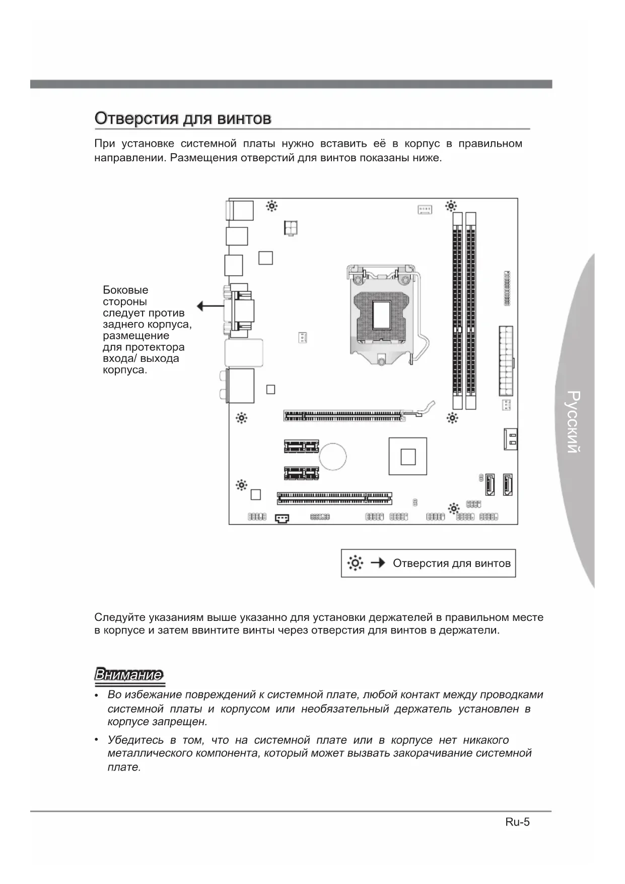 Отверстия для винтов Ru-5