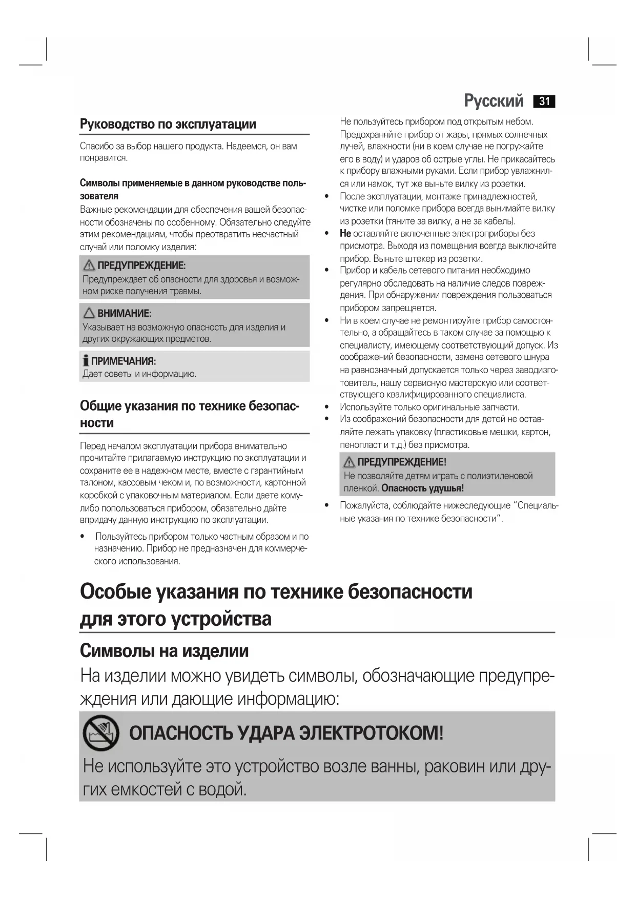 Hn npn KaKnx 6OCToAteIbCTBax He norgpykaIte yCTPOIcTB BO BDOy, YTO6bl NOUcNTbEro.3To MoKET npNBecTn K yDapy 3JIeKTpOTOKOM NIN NOXkapy.