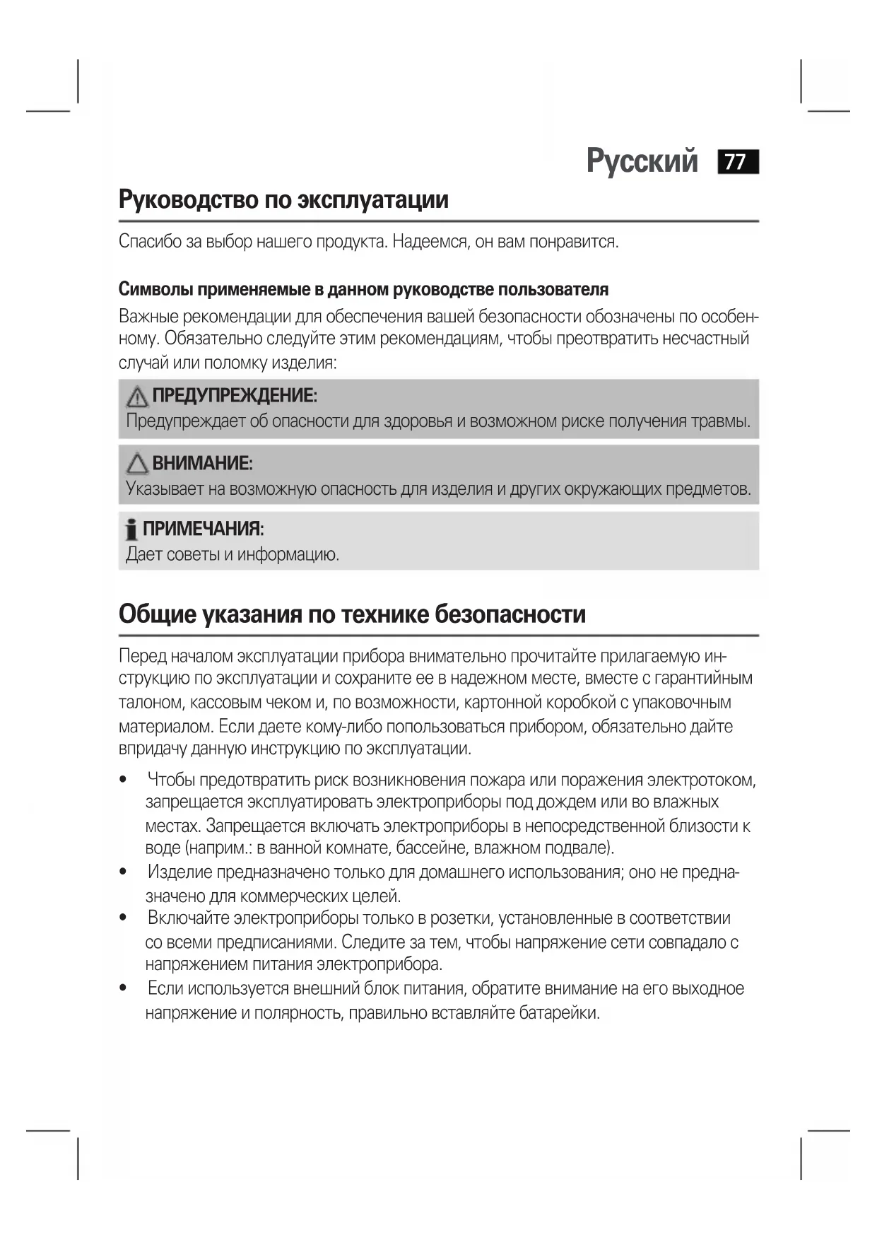 Важные рекомендации для обеспечения вашей безопасности обозначены по особен-