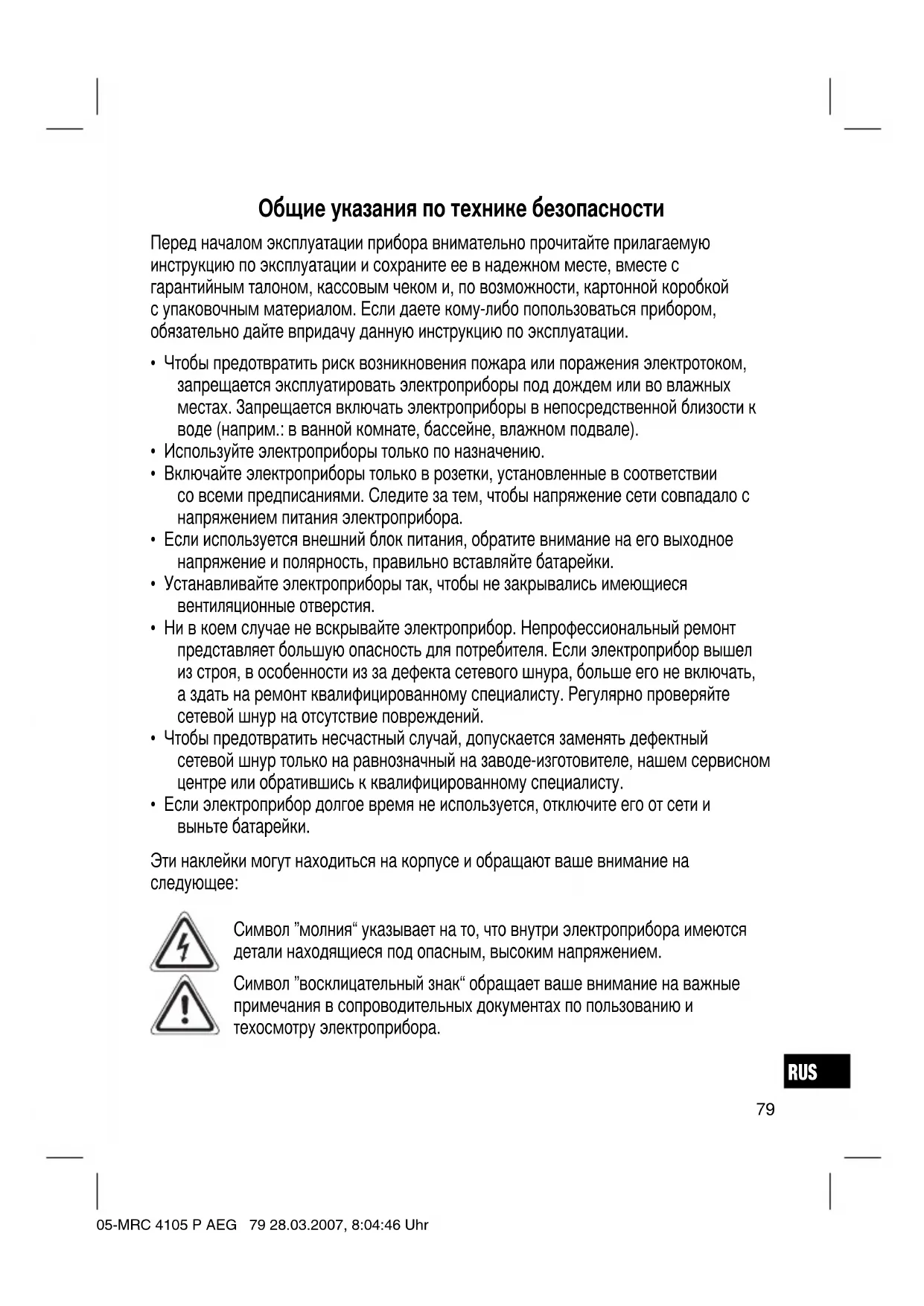 вода попадет в изделие, это может привести к серьезным последствиям. 05-MRC 4105 P AEG 80 28.03.2007, 8:04:47 UhrRUS
