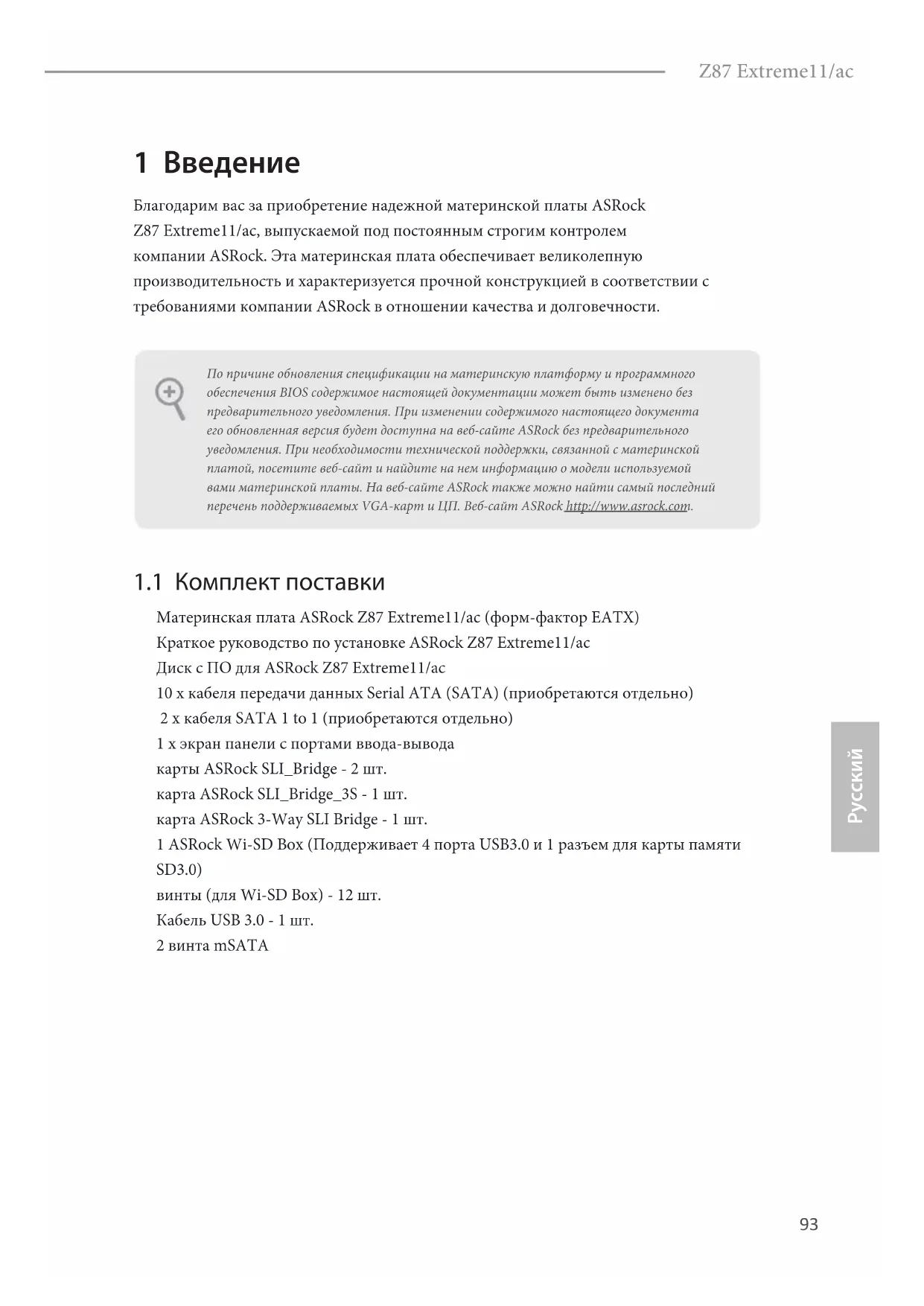 РУКОВОДСТВО ПОЛЬЗОВАТЕЛЯ Z87 Extreme11ac ASROCK