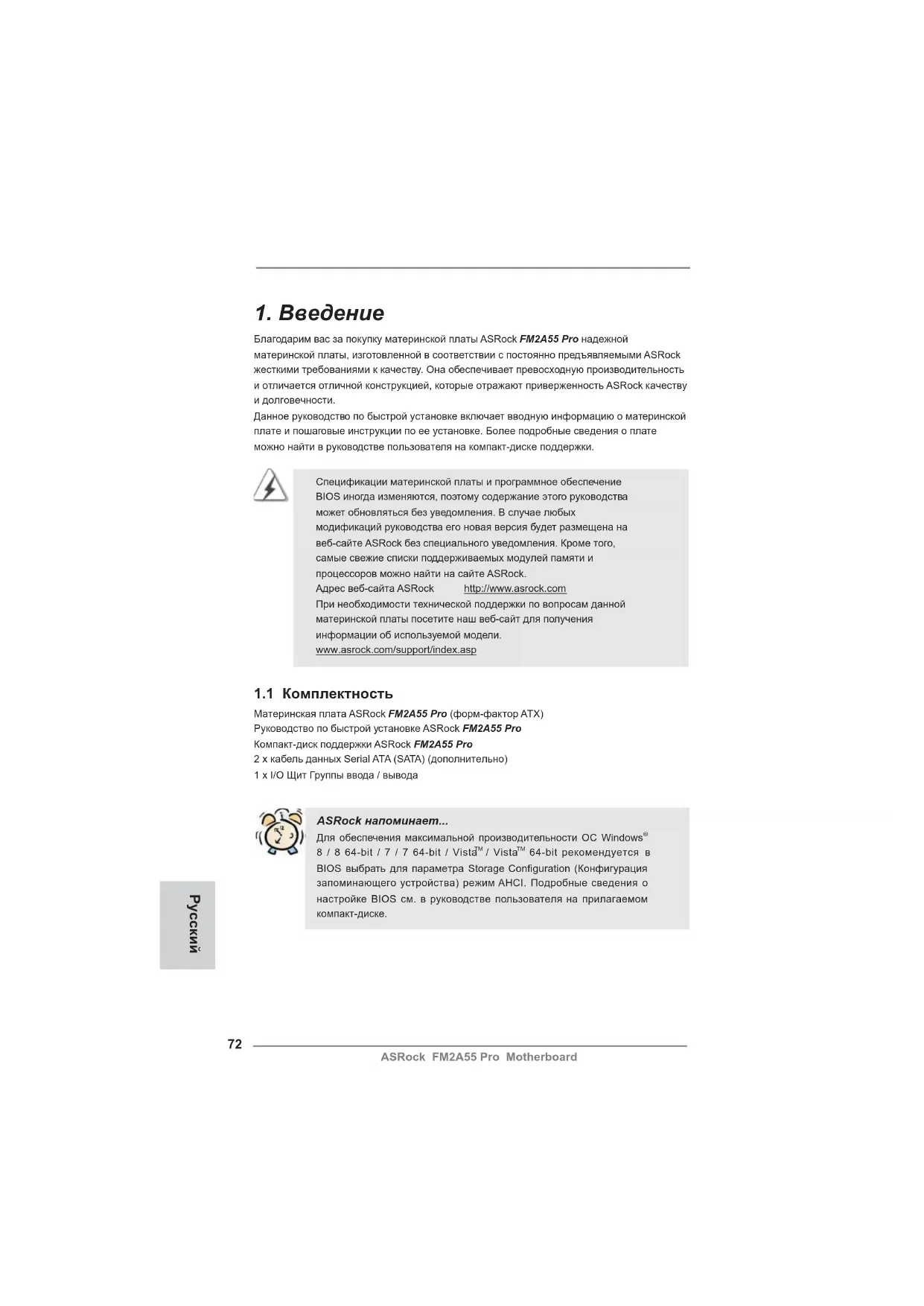 Благодарим вас за покупку материнской платы ASRock FM2A55 Pro надежной