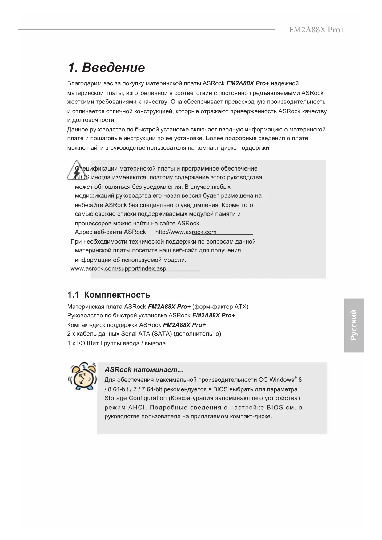 РУКОВОДСТВО ПОЛЬЗОВАТЕЛЯ FM2A88X Pro+ ASROCK