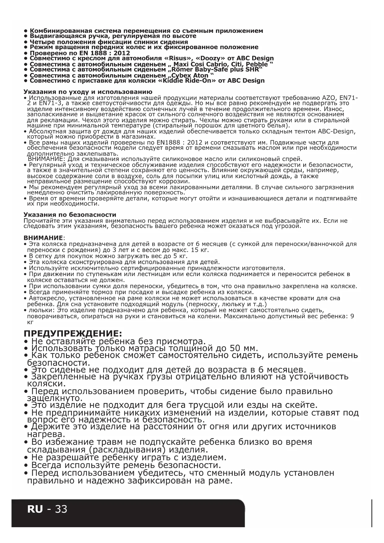 • Абсолютная защита от дождя для наших изделий обеспечивается только складным тентом ABC-Design,