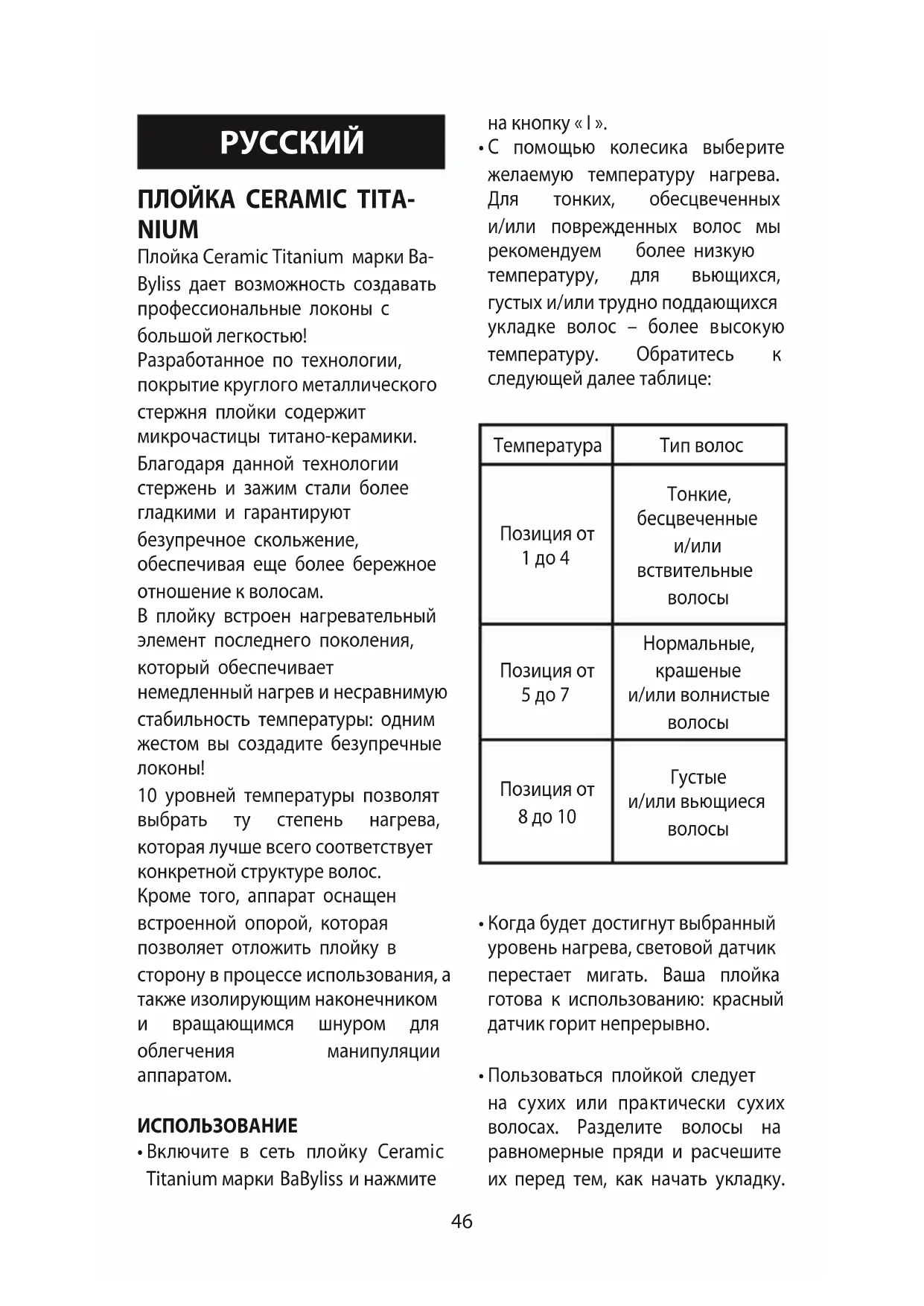 температуру, для вьющихся,