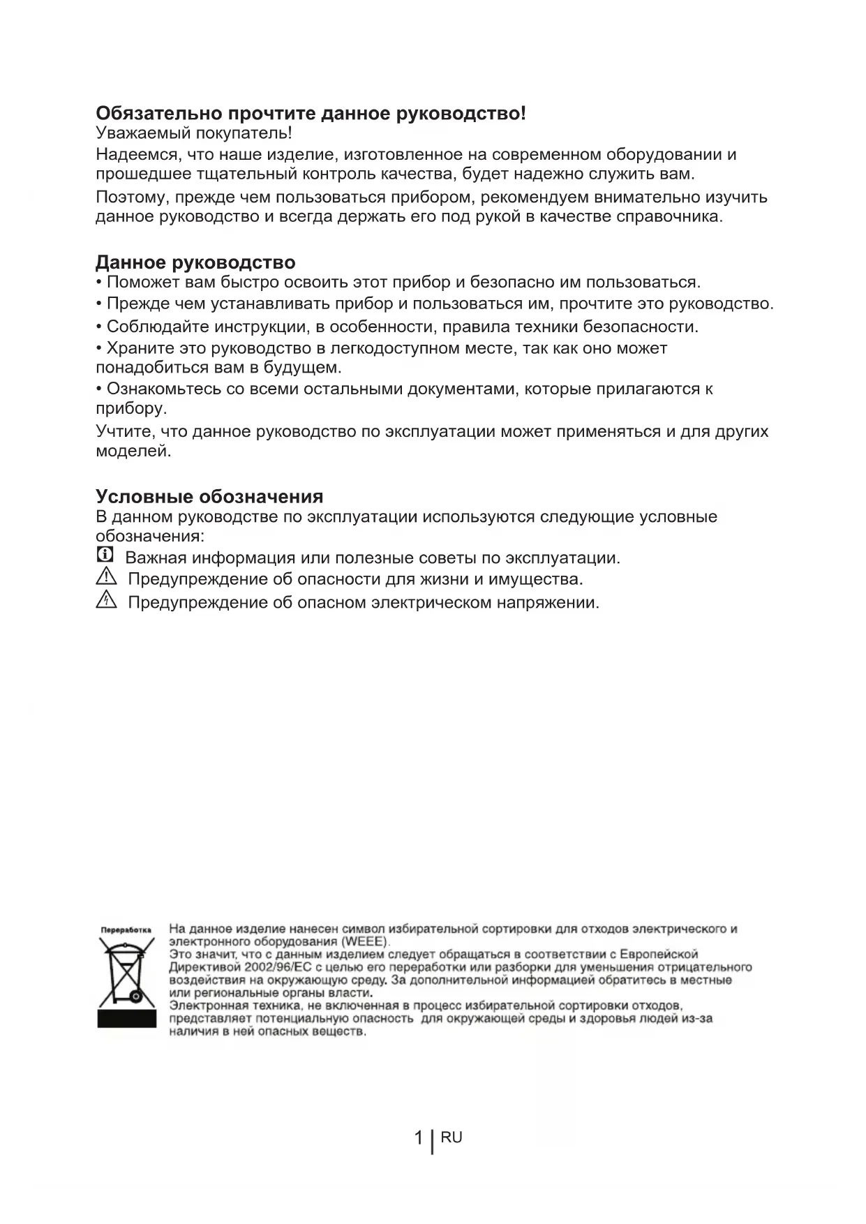 • Прежде чем устанавливать прибор и пользоваться им, прочтите это руководство.