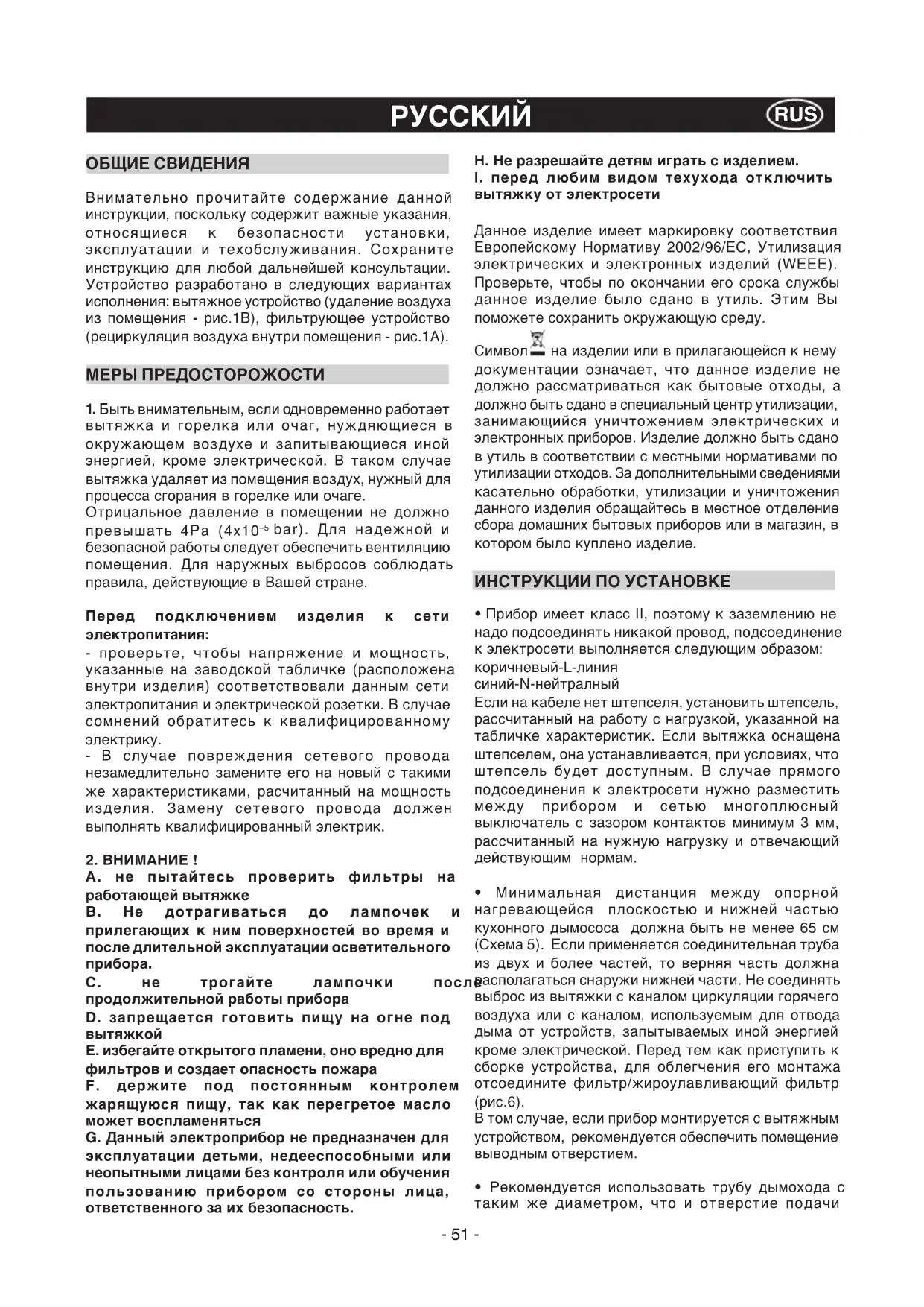 ВЫТЯЖНОЙ КОЛПАК - Руководство пользователя