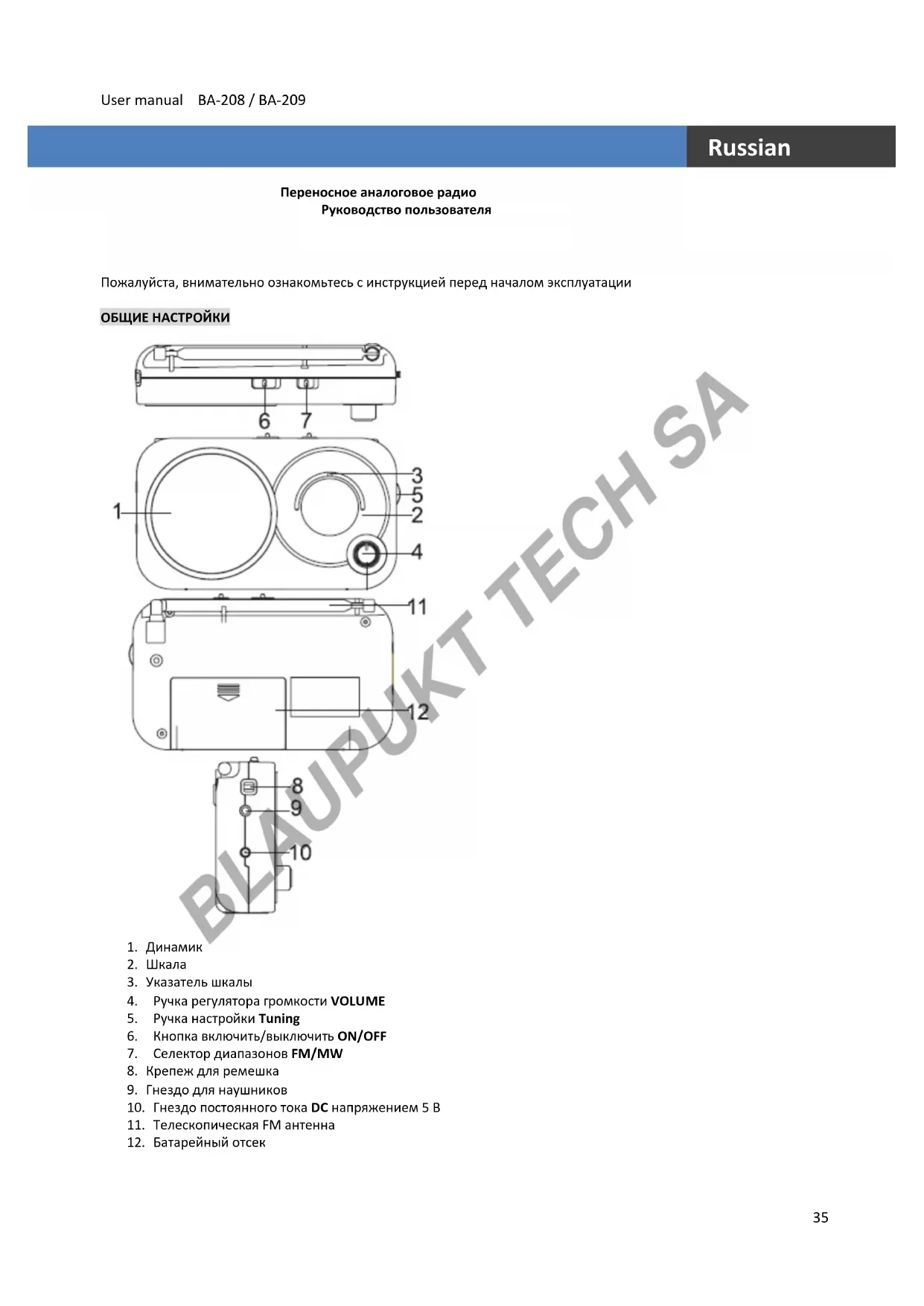 РУКОВОДСТВО ПОЛЬЗОВАТЕЛЯ BA209 BLAUPUNKT