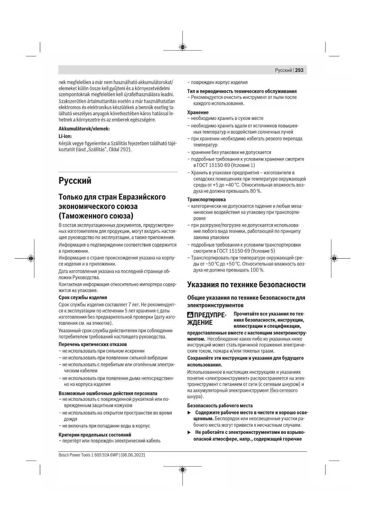 бочего места могут привести к несчастным случаям. u Не работайте с электроинструментами во взрыво- опасной атмосфере, напр., содержащей горючие Bosch Power Tools 1 609 92A 6WP | (08.06.2022)294 | Русский