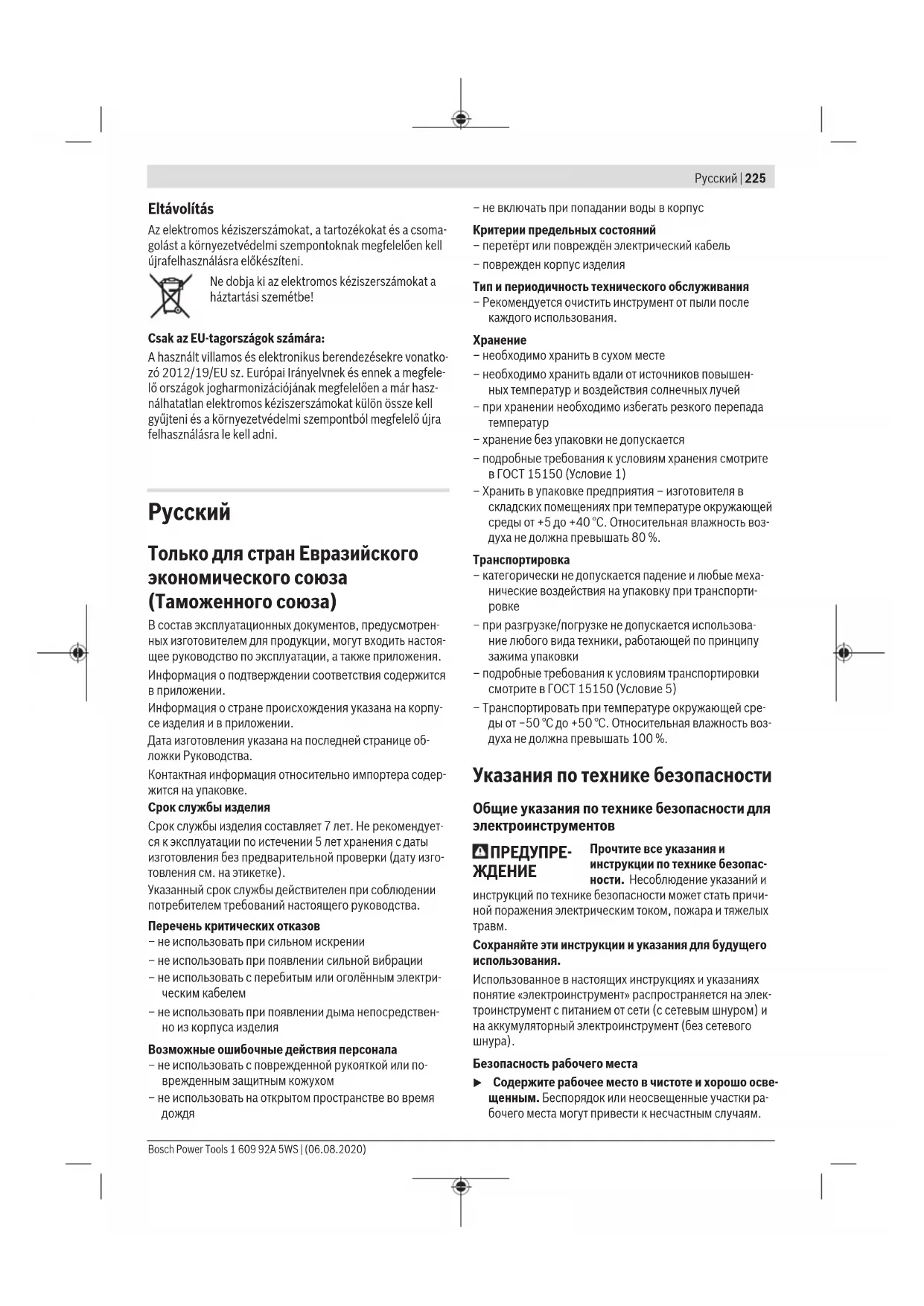 бочего места могут привести к несчастным случаям. Bosch Power Tools 1 609 92A 5WS | (06.08.2020)226 | Русский
