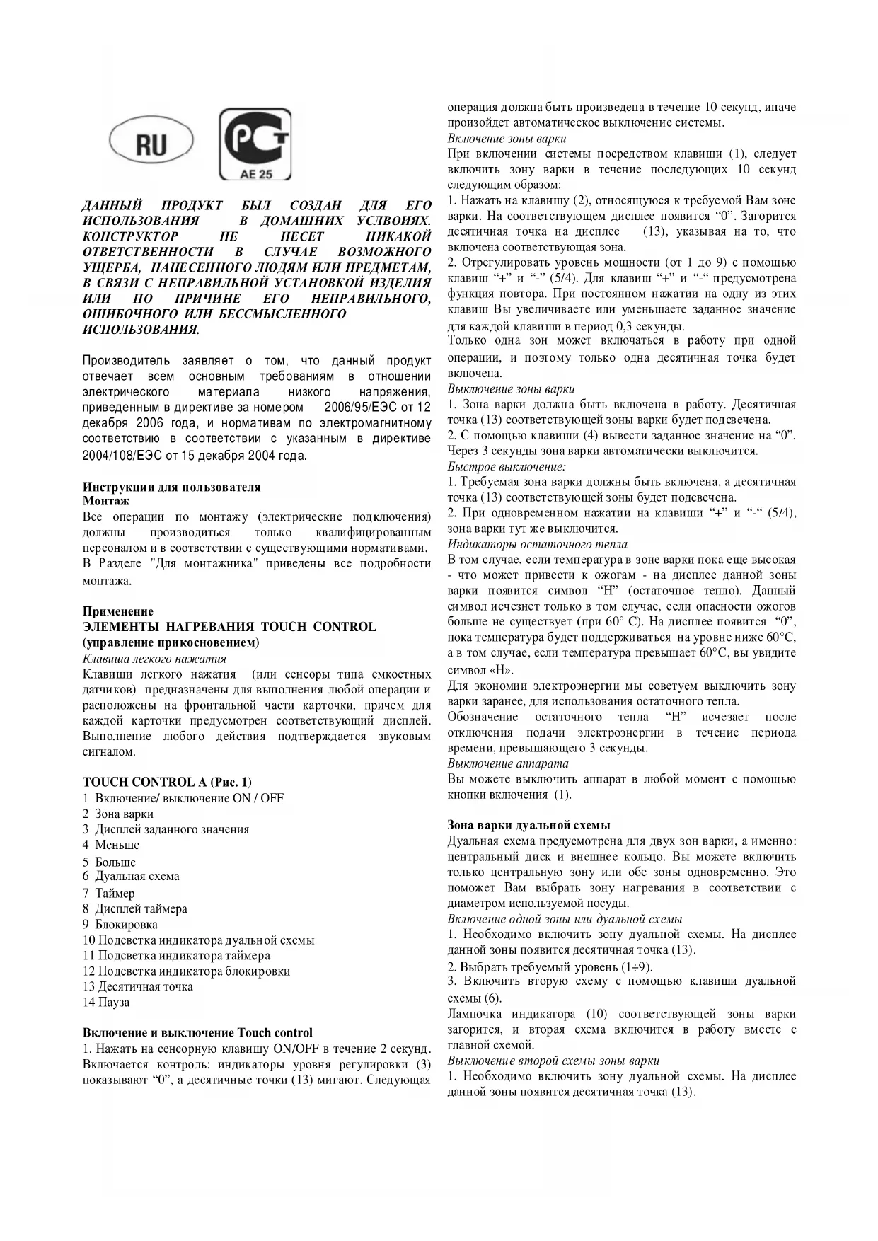 Дуальная схема предусм отрена для двух зон варки, а именно:
