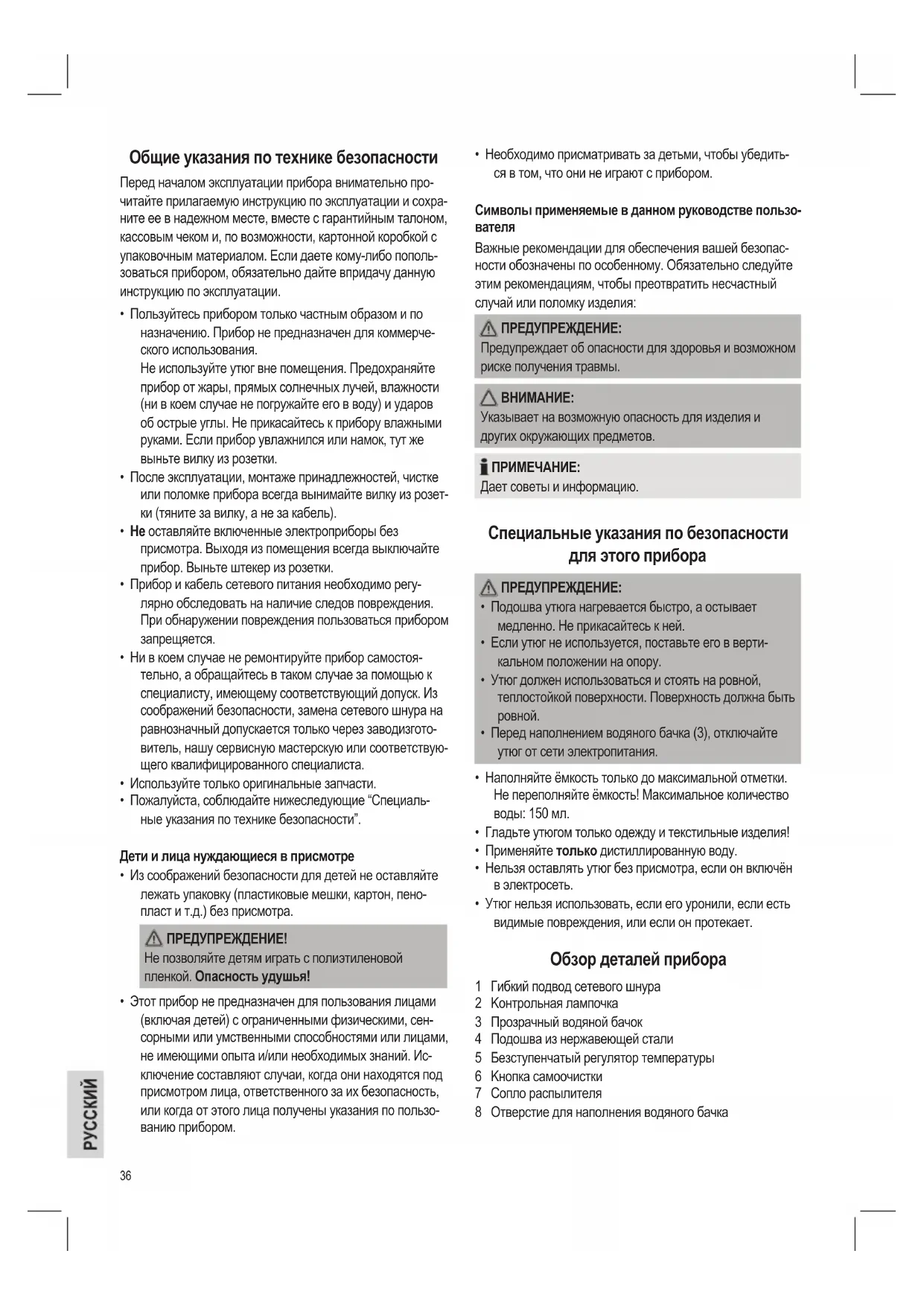 • Утюг должен использоваться и стоять на ровной,
