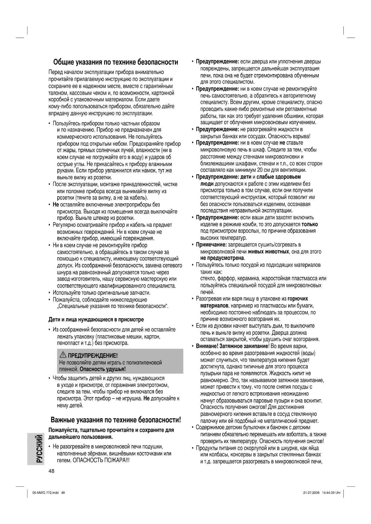пенопласт и т.д.) без присмотра.