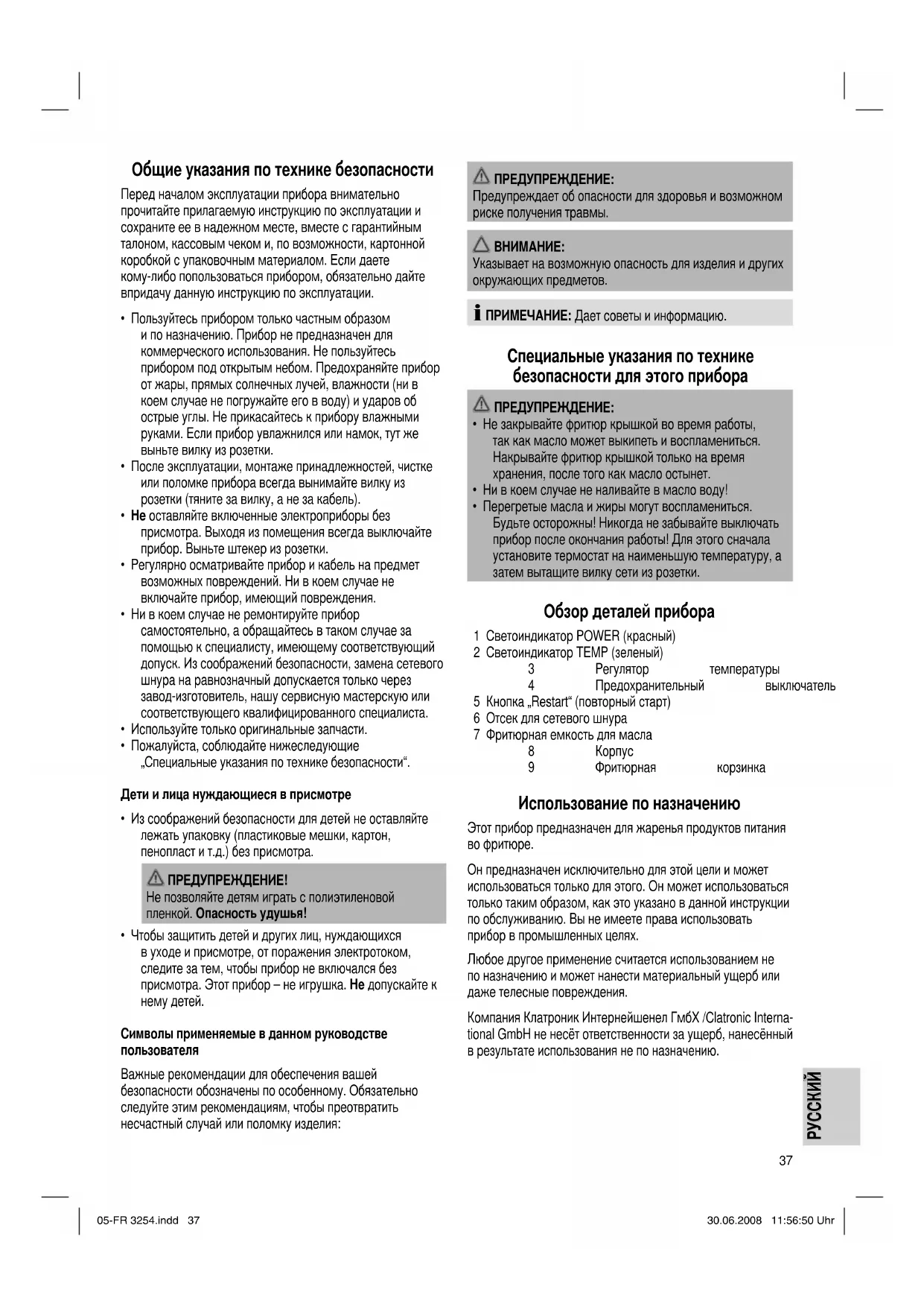 FR 3254 - фритюрница CLATRONIC - Бесплатное руководство пользователя