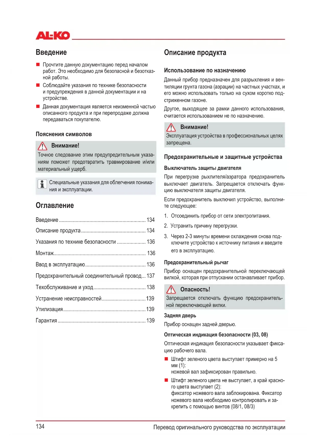 РУКОВОДСТВО ПОЛЬЗОВАТЕЛЯ Combi Care 38 E AL-KO