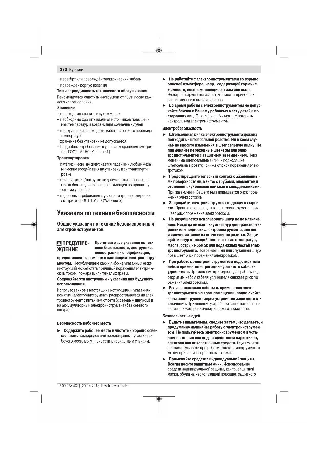 Русский | 269 Bosch Power Tools 1 609 92A 4CT | (20.07.2018)270 | Русский 1 609 92A 4CT | (20.07.2018) Bosch Power Tools Указания по технике безопасности