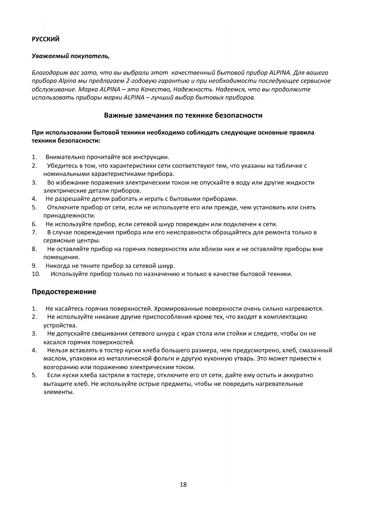 SF 2508 - тостер ALPINA - Бесплатное руководство пользователя