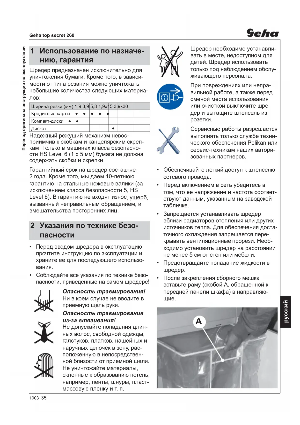 Перевод оригинала инструкции по эксплуатации36 1003Geha top secret 260