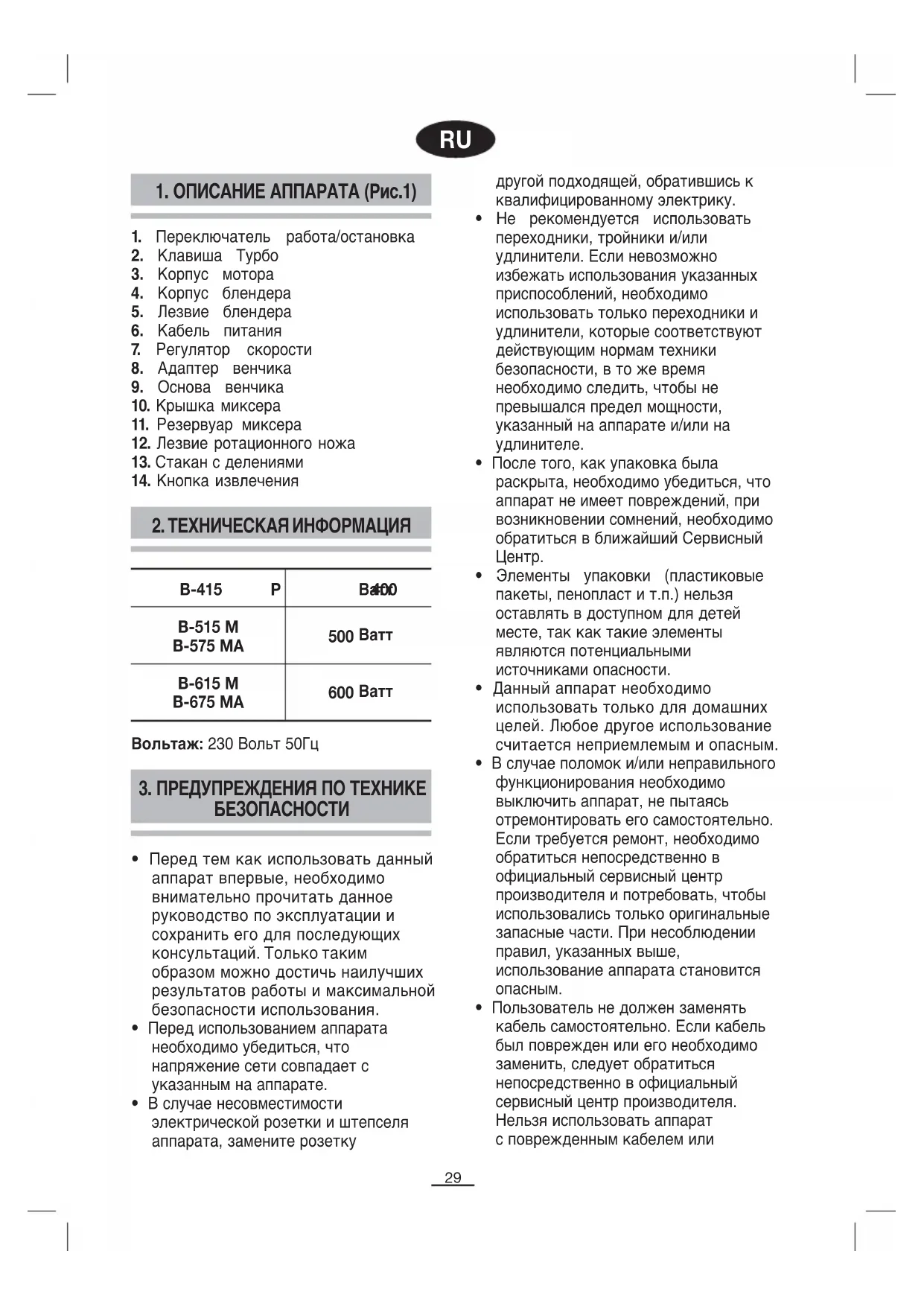 B515M - Блендер FAGOR - Бесплатное руководство пользователя