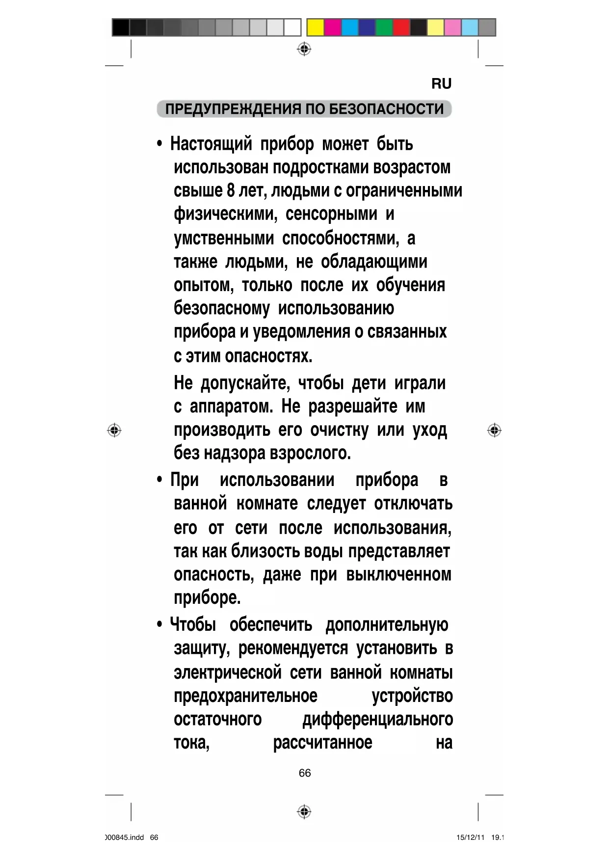 MI000845.indd 65 15/12/11 19.19ПРЕДУПРЕЖДЕНИЯ ПО БЕЗОПАСНОСТИ