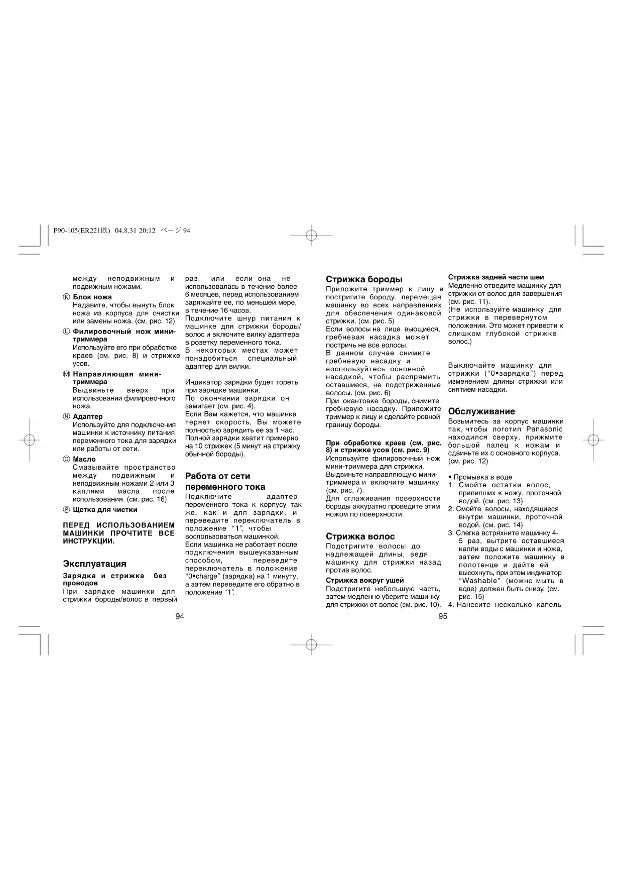 Скачайте инструкцию для вашего триммер для бороды в формате PDF бесплатно! Найдите своё руководство ER221 - PANASONIC и возьмите своё электронное устройство обратно в руки. На этой странице опубликованы все документы, необходимые для использования вашего устройства. ER221 бренда PANASONIC.