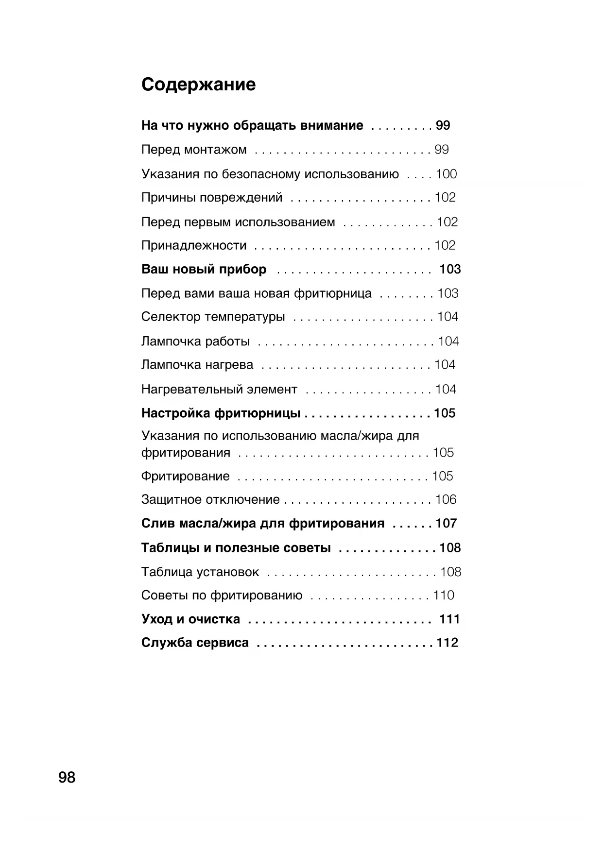 Перед вами ваша новая фритюрница . . . . . . . . 103
