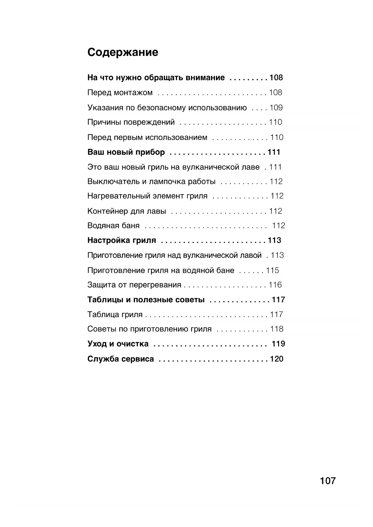 Таблица гриля . . . . . . . . . . . . . . . . . . . . . . . . . . . . 117
