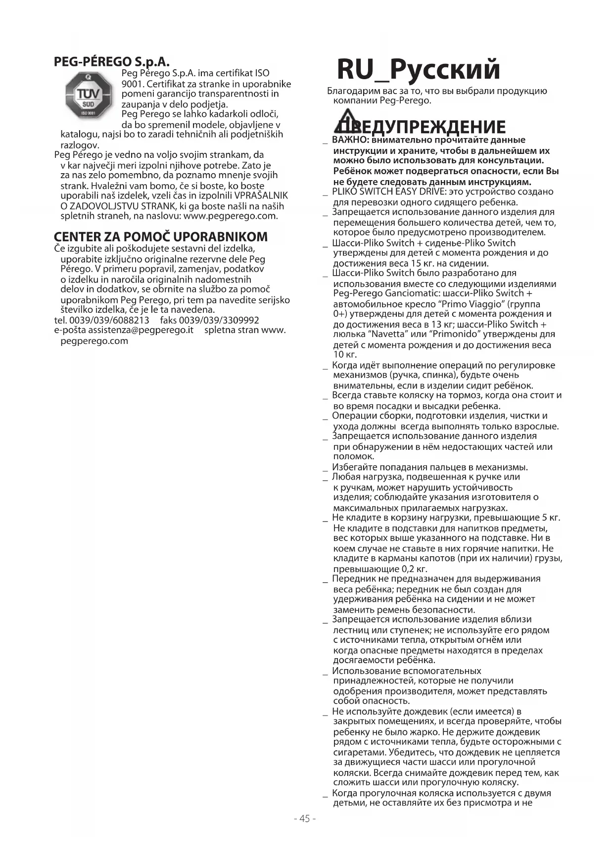 рекомендации. www.pegperego.com- 48 -